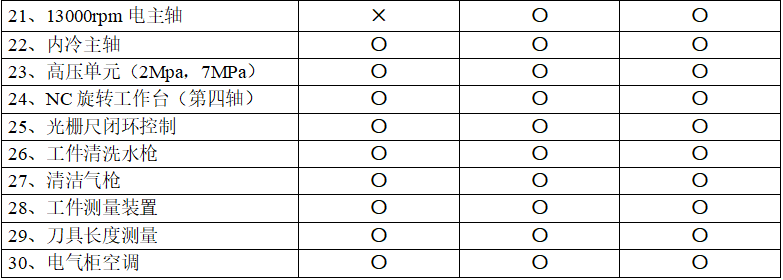 注明:标注●为标准配置 ○为可选配置 ×为不可选